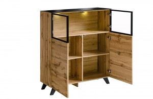 Мебель THIN - современная коллекция для гостиной. Выпускается в эффектном цветовом сочетании «дуб Вотан / черный». Верхние панели покрыты черным стеклом. Высокие ножки изготовлены из массива дерева черного цвета. Благодаря системе Push-click двери открываются легким нажатием на фасад. Встроенная подсветка в обрамлении черных алюминиевых рам создает уникальный и неповторимый внешний вид мебели THIN.