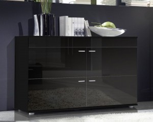 Черная версия комода Лого 2 - корпус черный матовый, фасады черные глянцевые + глянцевый черный цоколь.