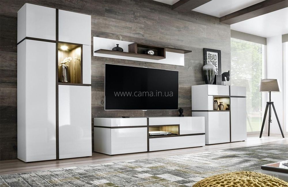 Тумба ТВ CROSS Белый+дуб графит/Белый глянец