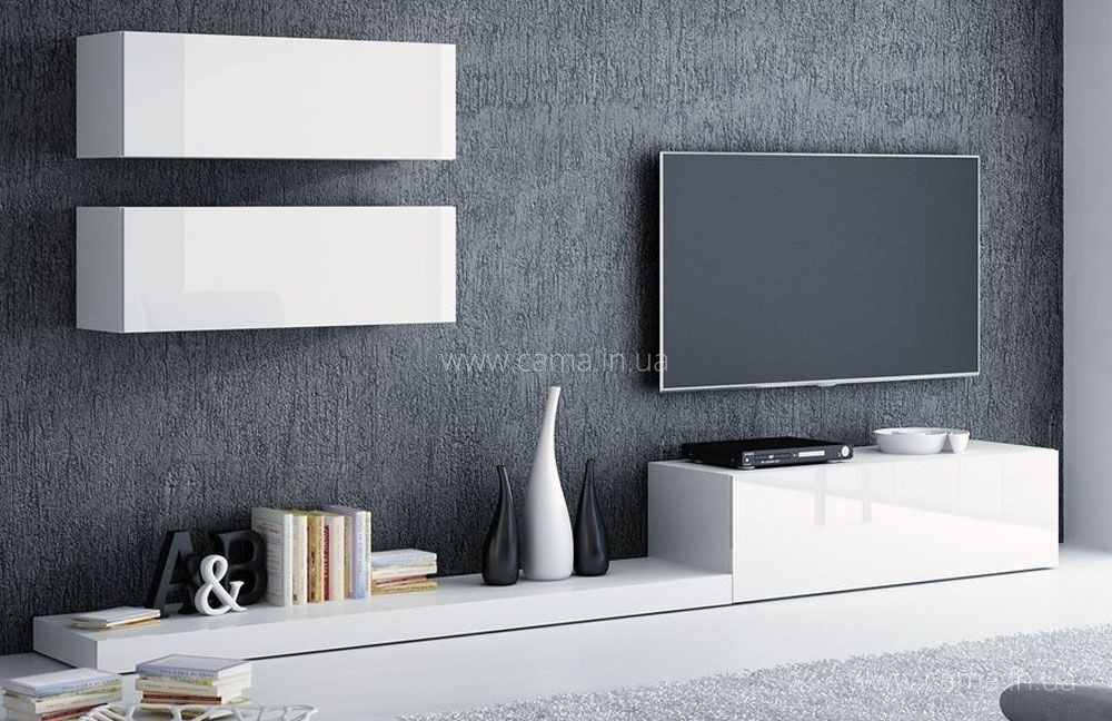 Современная, стильная гостиная Pixel 7 от известной фабрики Cama доступен во многих цветовых вариантах - вы можете свободно выбирать цвет как телевизионных тумб, так и навесных витрин.