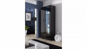Один фасад глянцевый со стеклом, внутри три стеклянные полки с возможностью установки 3 Led подсветки, второй фасад глухой,глянцевой,внутри три полки обычные, внизу два выдвижных ящика, фасады в глянцевые, установка дверей универсальная ( право/лево).