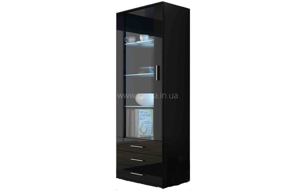 Витрина высокая Сохо: 192/60/41 фасад глянцевый с стеклом, внутри три стеклянные полки с подсветкой, три выдвижных ящика, фасады глянцевые.Подсветка не входит в комплект поставки.Материалы: