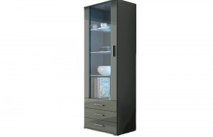 Витрина высокая Сохо: 192/60/41 фасад глянцевый с стеклом, внутри три стеклянные полки с подсветкой, три выдвижных ящика, фасады глянцевые.Подсветка не входит в комплект поставки.Материалы:
