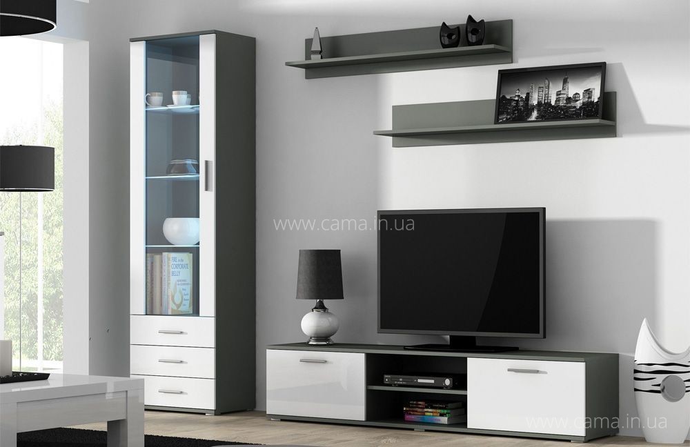 Фасад: МДФ ламинированный глянцевый, закаленное стеклоГостиная Soho 1 это пример компоновки элементов модульной системы Сохо, при заказе вы можете либо купить готовый набор, либо создать свой набор из различных элементов представленых в каталоге на нашем сайте