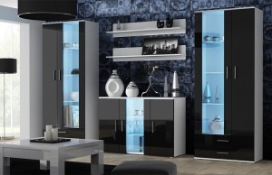 Витрина S-6 2D2S (Новинка!): 192/80/41 один фасад в глянцевый со стеклом, внутри три стеклянные полки с Led подсветкой, второй фасад весь глянцевый,внутри три полки обычные, два выдвижных ящика, фасады глянцевые, установка дверей универсальная (право/лево) - 2шт