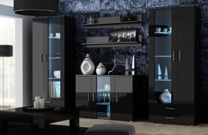 Витрина S-6 2D2S (Новинка!): 192/80/41 один фасад в глянцевый со стеклом, внутри три стеклянные полки с Led подсветкой, второй фасад весь глянцевый,внутри три полки обычные, два выдвижных ящика, фасады глянцевые, установка дверей универсальная (право/лево) - 2шт