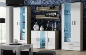 Витрина S-6 2D2S (Новинка!): 192/80/41 один фасад в глянцевый со стеклом, внутри три стеклянные полки с Led подсветкой, второй фасад весь глянцевый,внутри три полки обычные, два выдвижных ящика, фасады глянцевые, установка дверей универсальная (право/лево) - 2шт