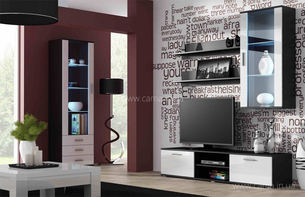Фасад: МДФ ламинированный глянцевый, закаленное стеклоГостиная Soho 6 это пример компоновки элементов модульной системы Сохо, при заказе вы можете либо купить готовый набор, либо создать свой набор из различных элементов представленых в каталоге на нашем сайте