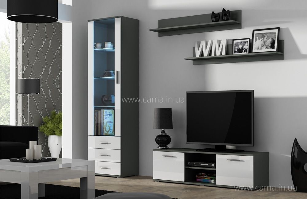 Фасад: МДФ ламинированный глянцевый, закаленное стеклоГостиная Soho 7 это пример компоновки элементов модульной системы Сохо, при заказе вы можете либо купить готовый набор, либо создать свой набор из различных элементов представленых в каталоге на нашем сайте