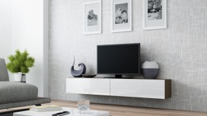 Комод Vigo RTV: 30/140/42, два глянцевых фасада, открываются вниз, система PUSH-CLICK, комод разделен внутри на две секции.