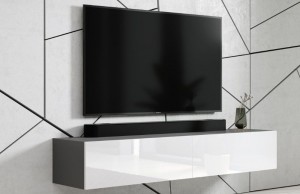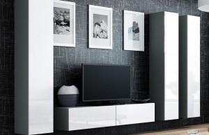 Интересная комбинация цветов ТВ тумбы Виго - корпус серый матовый, а фасады белые глянцевые.