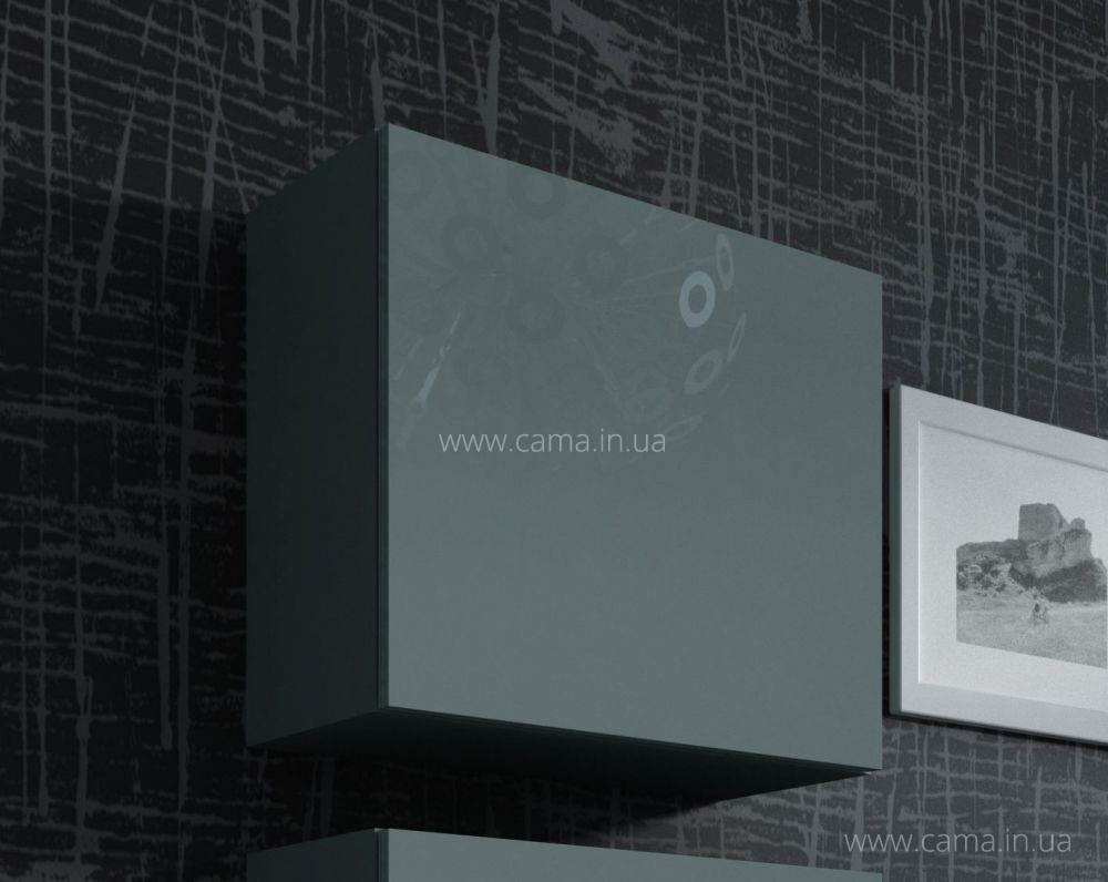 В комплекте поставки есть крепления для навешивания на стену.Фасад открывается с помощью системы PUSH - CLICK - открытие нажатием.