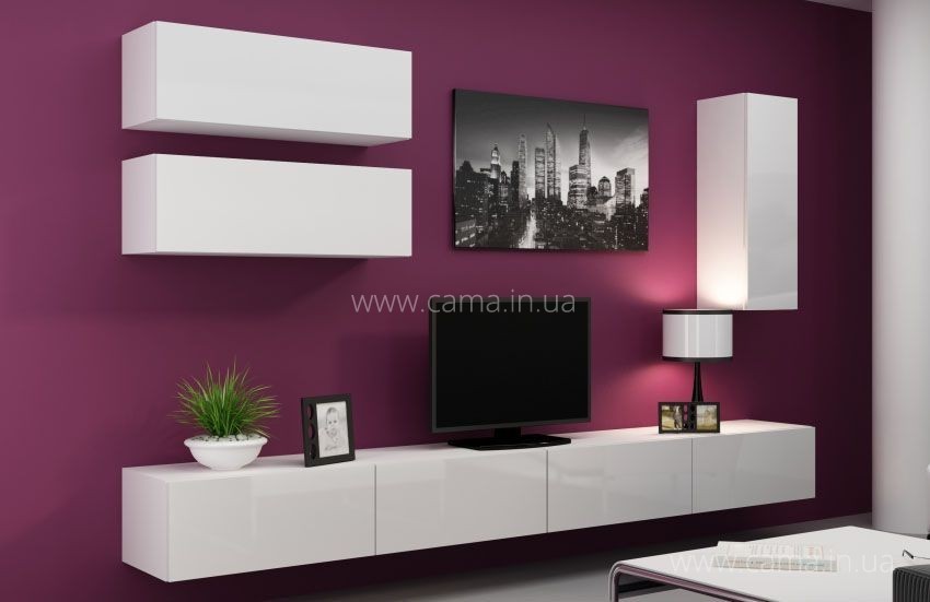 Виго 13 красивый набор мебели в гостиную, специфика этого набора в отсутствии витрин, все пять элементов входящих в набор имеют глухие глянцевые фасады.