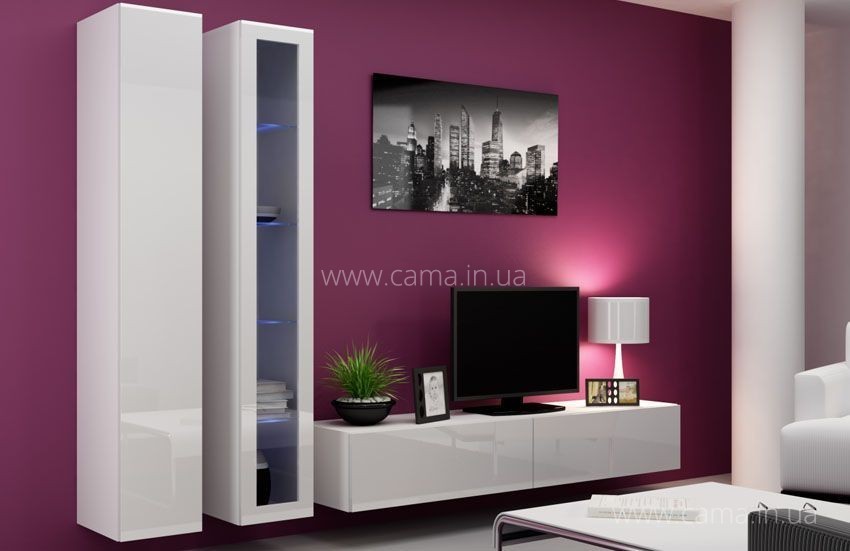 Также возможно отдельно подобрать синюю, белую, красную или зеленую подсветку. Главными плюсами мебельной стенки VIGO IІІ от фабрики Кама (Cama) являются ее современный минималистский стиль, строгие геометрические формы, прямые линии фасадов, многофункциональность и компактность.
