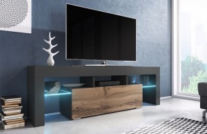Cama TORO тумба для телевизора 138 см шириной, спереди открывается вниз, за дверкой находится ниша для техники, так же есть две стеклянные полки, с возможностью подключения подсветки.